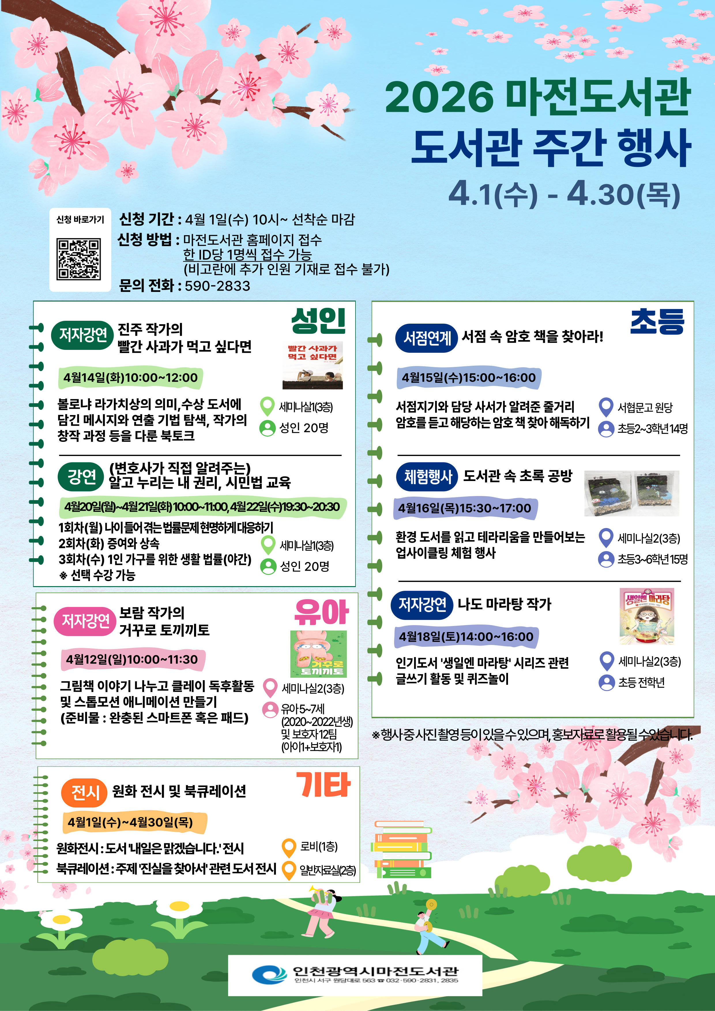 마전도서관 4월 도서관 주간 행사 안내드립니다.